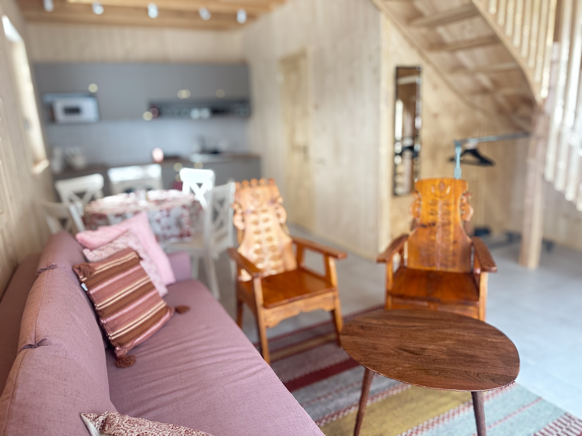 • unikatowe rzeźbione fotele i stolik kawowy