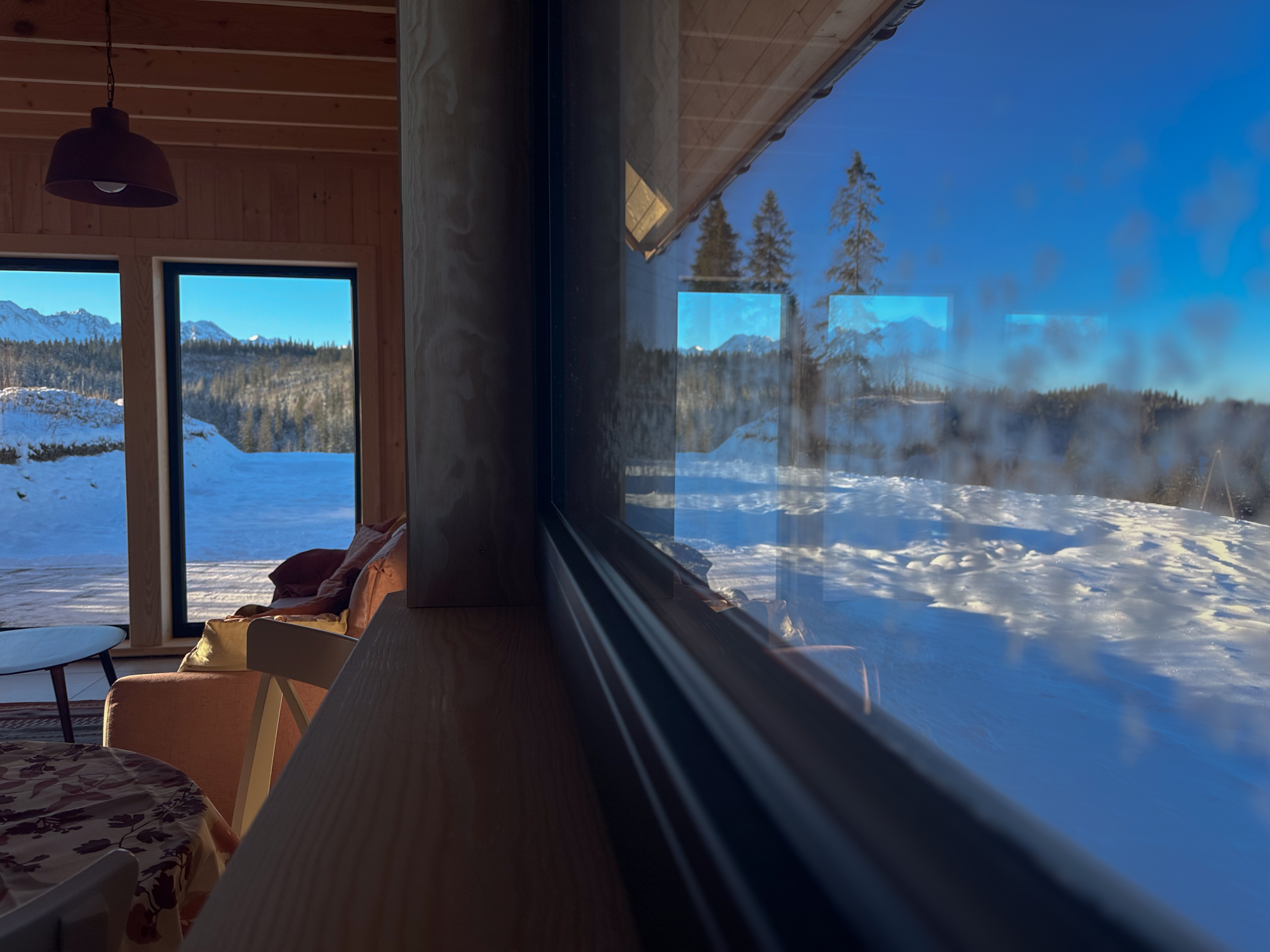 Salon z widokiem na ogród i Tatry